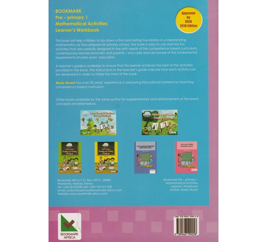 This book will help children to lay down a firm and lasting foundation in understanding mathematics as they prepare for primary school. The book is easy to use and has fun activities that are carefully designed in line with needs of the competence-based curriculum, contemporary learners, teachers, and parents – who care and are aware of the fundamental requirements of early years’ education.