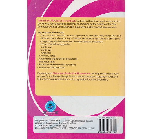 Distinction CRE Grade Six workbook has been authored by experienced teachers of CRE who have adequate experience and training on the delivery of the New Competency Based Curriculum. This guarantees quality concept development.