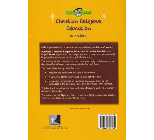 Fun with Christian Religious Education Activities Pre-Primary 1, Pupils Book, is presented in a simple way that is easy to understand and in language that learners at this level will identify with.