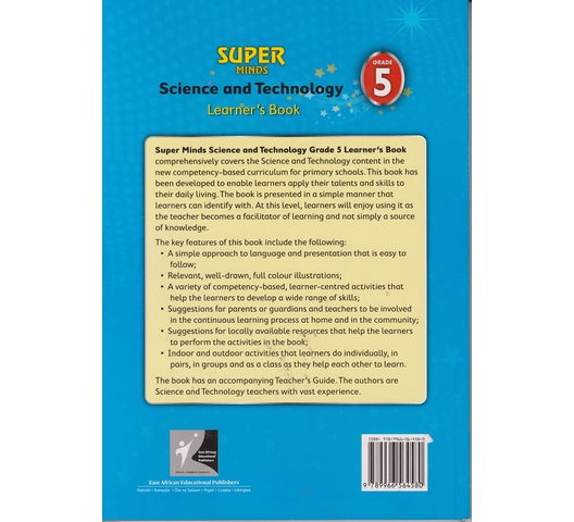 Super Minds Science and Technology Grade 5 Learner’s Book comprehensively covers the Science and Technology content in the new competency-based curriculum for primary schools. This book has been developed to enable learners to apply their talents and skills to their daily living. The book is presented in a simple manner that learners can identify with. At this level, learners will enjoy using it as the teacher becomes a facilitator of learning and not simply a source of knowledge.