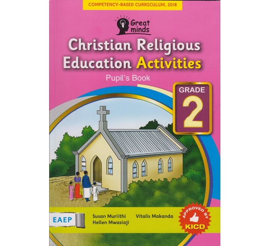 Great Minds Christian Religious Activities Grade 2. Pupil’s Book, is a comprehensive course based on the new Competency-Based Curriculum, 2018 for primary schools. This course has been developed to enable learners to apply Biblical teachings to daily living. This Grade 2 book is presented in a simple manner. Learners at this level will enjoy using it. Here, the teacher becomes a facilitator of learning and not simply a source of knowledge. The key features of this book include: • A simple approach to language and presentation that is easy to follow. • Relevant, well drawn full colour illustrations. • A variety of competency-based learner-centered activities that help the learners to develop a wide range of skills. Suggestions for parents and teachers to be involved in the continuous learning process at home. Songs, verses, poems and prayers that help the learners to understand the content within this book. Indoor and outdoor activities that learners do in pairs and in groups as they help each other to learn. The book has an accompanying Teacher’s Guide. The authors are Christian Religious Education teachers with vast experience.