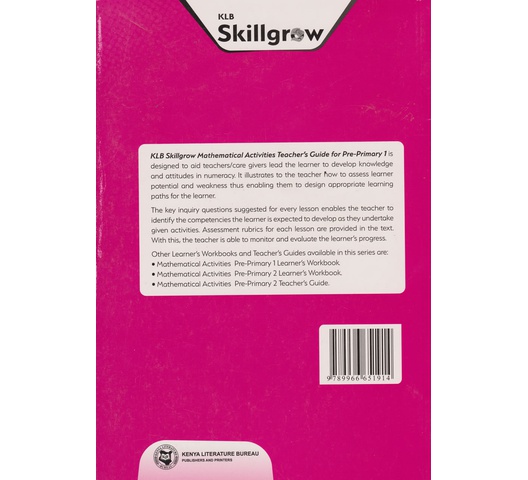 KLB Skillgrow Mathematical PP1 Trs (Approved) by Mbugua - Pick A Book Limited