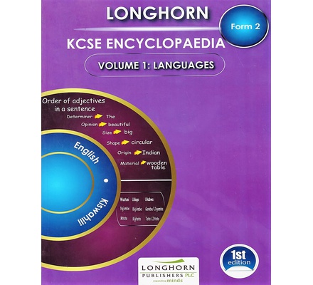 LONGHORN Form 2 KCSE Encyclopaedia Volume 1 is a new, concise and comprehensive book that has been written for Form 2 Students. The book comprises of English and Kiswahili subjects. It has been developed in line with the Kenyan Secondary Curriculum. It is aimed at meeting the needs of secondary school students preparing for their Kenya Certificate of Secondary Education (KCSE) Examination.
