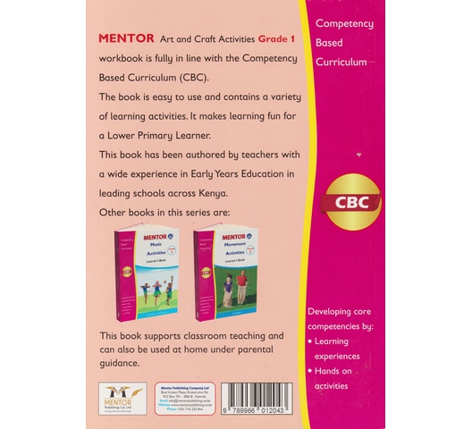 MENTOR Art and Craft Activities Grade 1 workbook is fully in line with the Competency Based Curriculum (CBC).The book is easy to use and contains a variety of learning activities. It makes learning fun for a Lower Primary Learner. This book has been authored by teachers with a wide experience in Early Years Education in leading schools across Kenya.