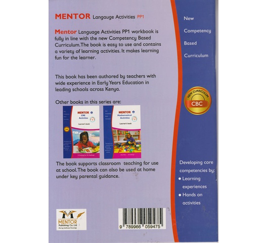Mentor Language Activities PP1 workbook is fully in line with the new Competency Based Curriculum. The book is easy to use and contains a variety of learning activities. It makes learning fun for the learner.