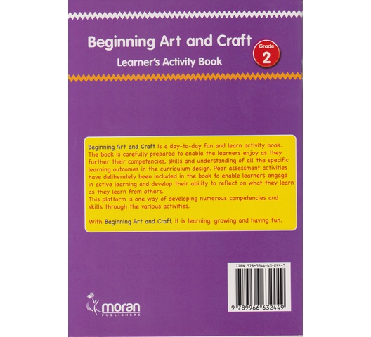 Beginning Art and Craft is a day-to-day fun and learn activity book. The book is carefully prepared to enable the learners to enjoy as they further their competencies, skills, and understanding of all the specific learning outcomes in the curriculum design. Peer assessment activities have deliberately been included in the book to enable learners to engage in active learning and develop their ability to reflect on what they learn as they learn from others. This platform is one way of developing numerous competencies and skills through various activities.