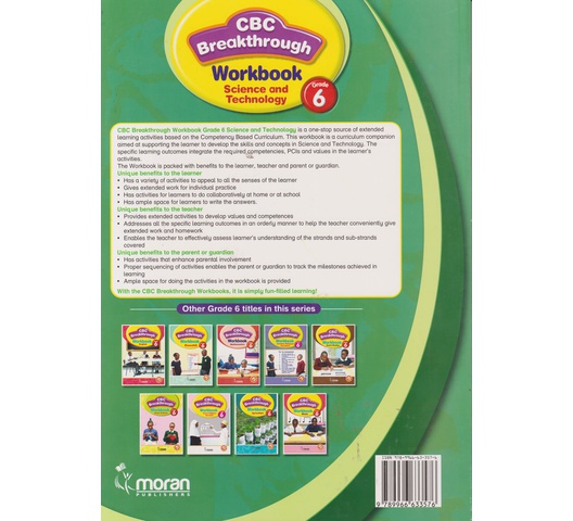 CBC Breakthrough Workbook Grade 6 Science and Technology is a one-stop source of extended learning activities based on the Competency Based Curriculum. This workbook is a curriculum companion aimed at supporting the learner to develop the skills and concepts in Science and Technology. The specific teaming outcomes integrate the required competencies, PCls and values in the learner’s activities.The Workbook is packed with benefits to the learner, teacher and parent or guardian.