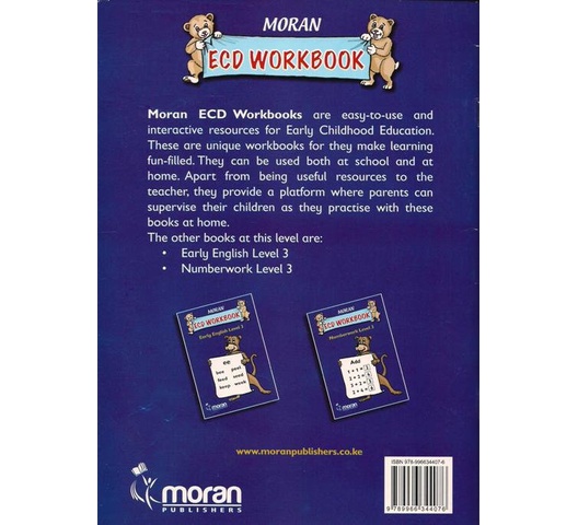 Moran ECD Workbooks are easy-to-use and interactive resources for Early Childhood Education. These are unique workbooks for they make learning fun-filled. They can be used both at school and at home. Apart from being useful resources to the teacher, they provide a platform where parents can supervise their children as they practise with these books at home.The other books at this level are: