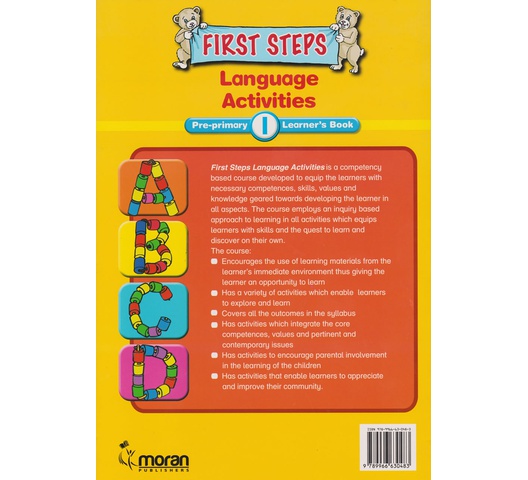 First Steps Language Activities is a competency based course developed to equip the learners with necessary competences, skills, values and knowledge geared towards developing the learner in all aspects. The course employs an inquiry based approach to learning in all activities which equips learners with skills and the quest to learn and discover on their own.