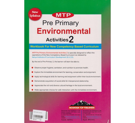 MTP Pre Primary Environmental Activities 2 is specially designed to reflect the aspirations of the New Competency Based Curriculum as released by Kenya Institute of Curriculum Development (K.I.C.D).