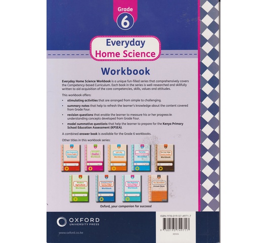 Everyday Home Science Workbook is a unique fun-filled series that comprehensively covers the Competency-based Curriculum. Each book in the series is well-researched and skillfully written to aid acquisition of the core competencies, skills, values and attitudes.