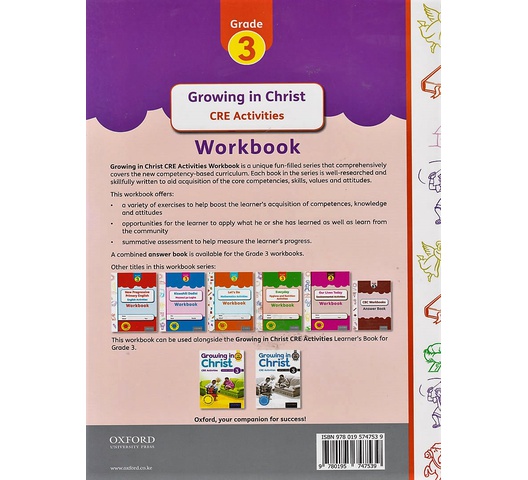 Growing in Christ CRE Activities Workbook is a unique fun-filled series that comprehensively covers the new competency-based curriculum. Each book in the series is well-researched and skillfully written to aid acquisition of the core competencies, skills, values and attitudes.