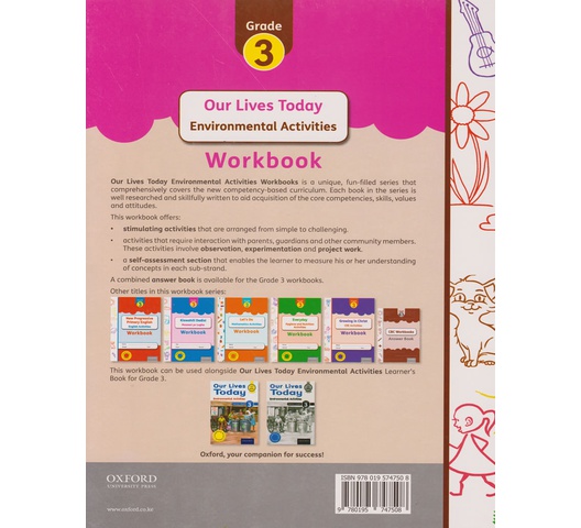 Our Lives Today Environmental Activities Workbooks is a unique, fun-filled series that comprehensively covers the new competency-based curriculum. Each book in the series is well researched and skillfully written to aid acquisition of the core competencies, skills, values and attitudes.