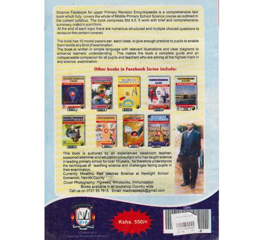 Science Facebook for upper Primary Revision Encyclopaedia is a comprehensive text book which fully covers the whole of Middle Primary School Science course as outlined in the current syllabus. The book comprises Std 4,5, 6 work with brief and comprehensive summary, noted in point form.At the end of each topic there are numerous structured and multiple choices questions to revise on the content covered.The book has 10 model papers per each class, to give enough practice to pupils to enable them tackle any kind of examination.The book is written in simple language with relevant illustrations and clear diagrams to enhance learners’ understanding . This makes the book a complete guide and an indispensable companion for all pupils and teachers who are aiming at the highest mark in any science examination.