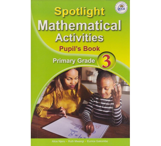 Spotlight Mathematical Activities Pupils Book Primary Grade 3 has been uniquely designed to greatly benefit Primary Grade Three Pupils in handling New Curriculum Mathematical Activities. It comprehensively covers the Primary Grade 3 mathematical Activities Curriculum Design as per the Competence-based Curriculum introduced by the Kenya Institute of Curriculum Development (KICD) in 2017. It is presented in a clear, simple and precise language that makes learning stimulating and interesting.