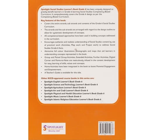 Spotlight Social Studies Learner’s Book Grade 6 has been uniquely designed to greatly benefit learners in Grade 6 learning Social Studies Competency-Based Curriculum. It comprehensively covers the Grade 6 design as per the Competency-Based Curric