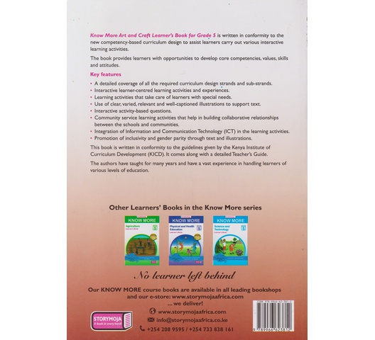 Know More Art and Craft Learner’s Book for Grade 5 is written in conformity to the new competency-based curriculum design to assist learners carry out various interactive learning activities.