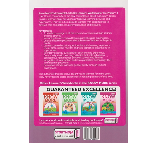 Know More Environmental Activities Learner’s Workbook for Pre-Primary 1 is written in conformity to the new competence-based curriculum design to assist learners to carry out various interactive learning activities and experiences. This will, in turn, provide learners with opportunities to develop core competencies, core values, skills, and attitudes.