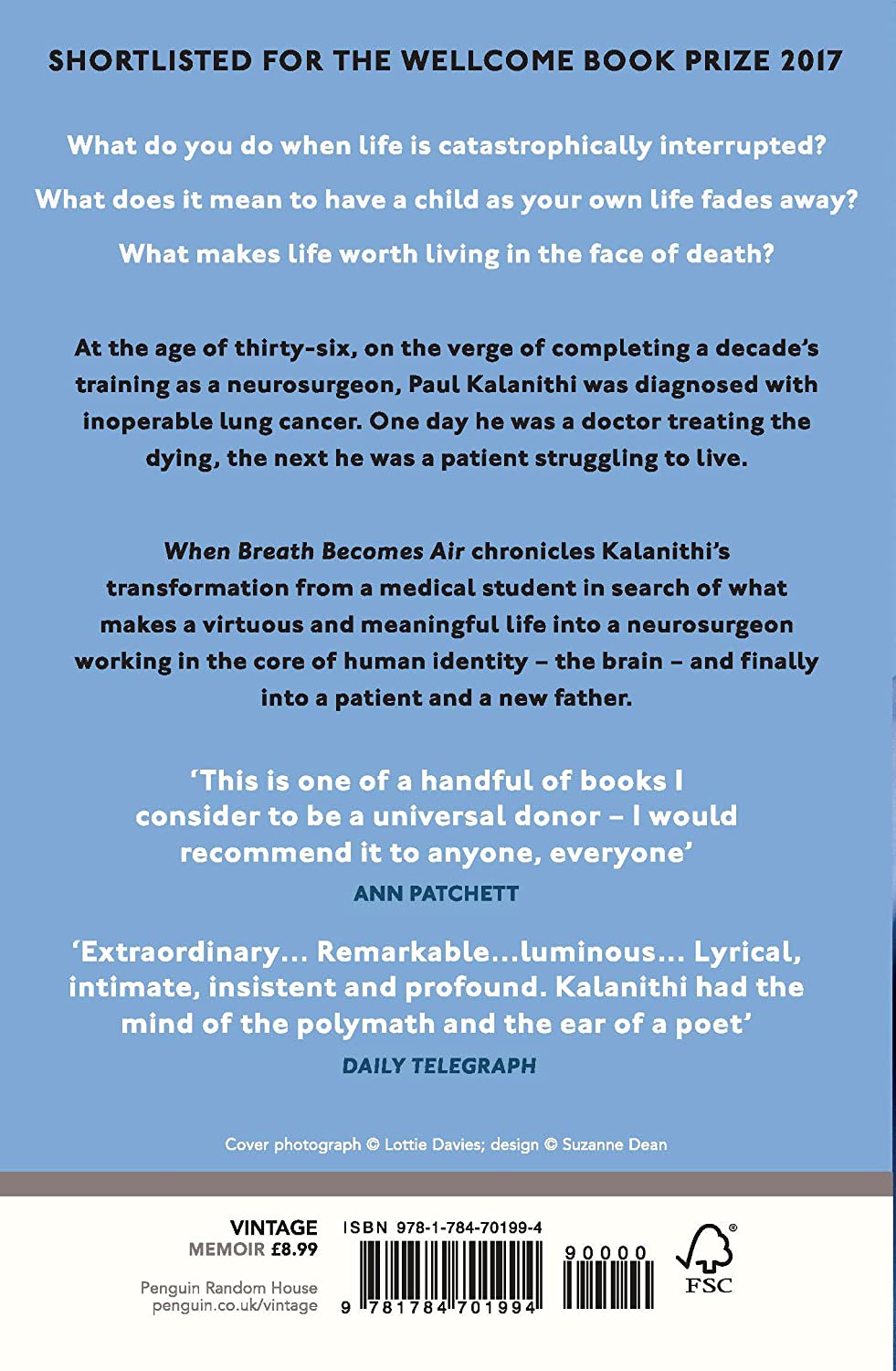 Paul Kalanithi died while working on this profoundly moving book, yet his words live on as a guide to us all. When Breath Becomes Air is a life-affirming reflection on facing our mortality and on the relationship between doctor and patient, from a gifted writer who became both.